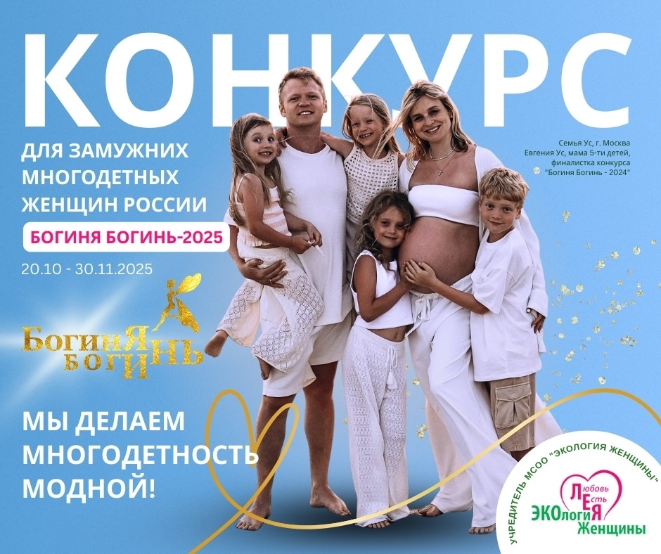 В 9-й раз произойдет СТАРТ БЕСПЛАТНОГО КОНКУРСА для замужних многодетных женщин России #БогиняБогинь2025